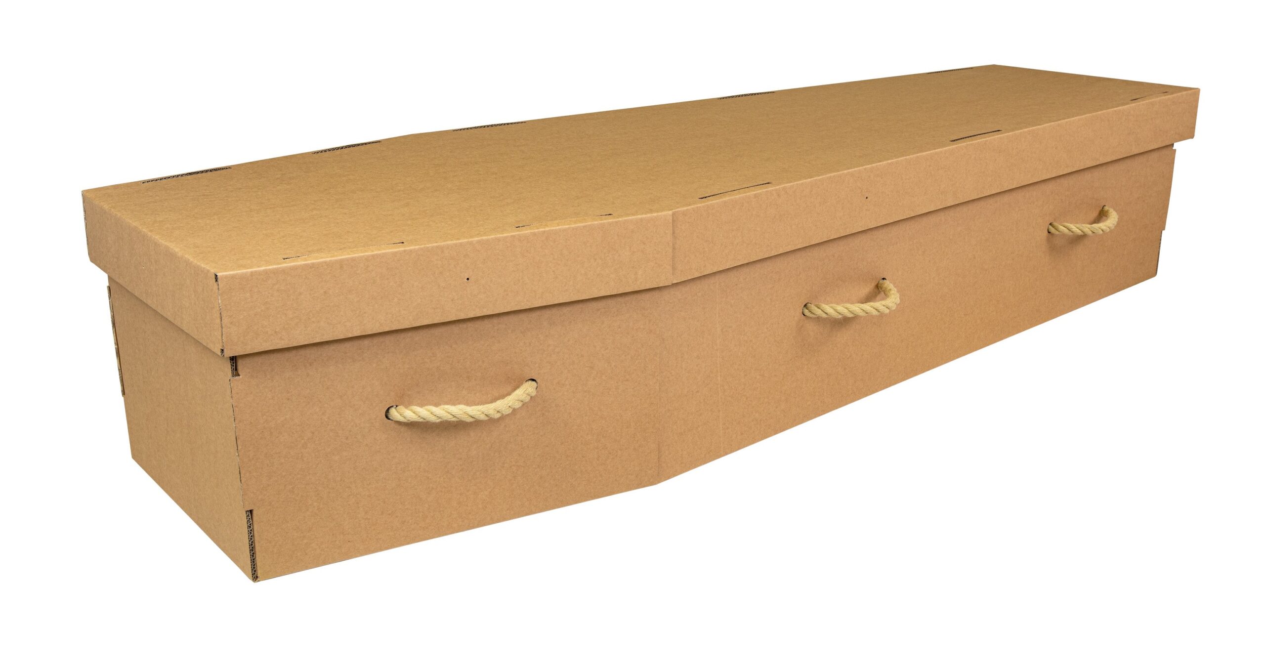Cardboard coffin with fixed rope handles